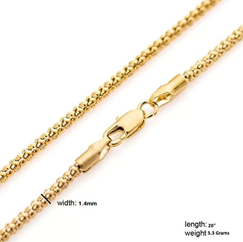 COMFORT FIT: This Italian 14K Solid Yellow Gold 1.4mm Popcorn chain necklace is a high polished finish with a beautiful easy to use closure. This chain will fit extremely comfortably on your neck and will shine beautiful every day. Makes a perfect everyday wear. 14k gold is also a great gift for friends, loved ones, wife, girlfriend, daughter, or your valentine