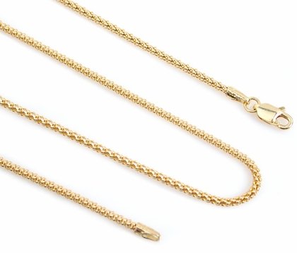 ITEM INFO: This 14K Solid Yellow Gold 1.4mm Popcorn chain necklace is made up of genuine 14K yellow gold metal. The lock is a special lobster lock making this chain sturdy and easy to put on,