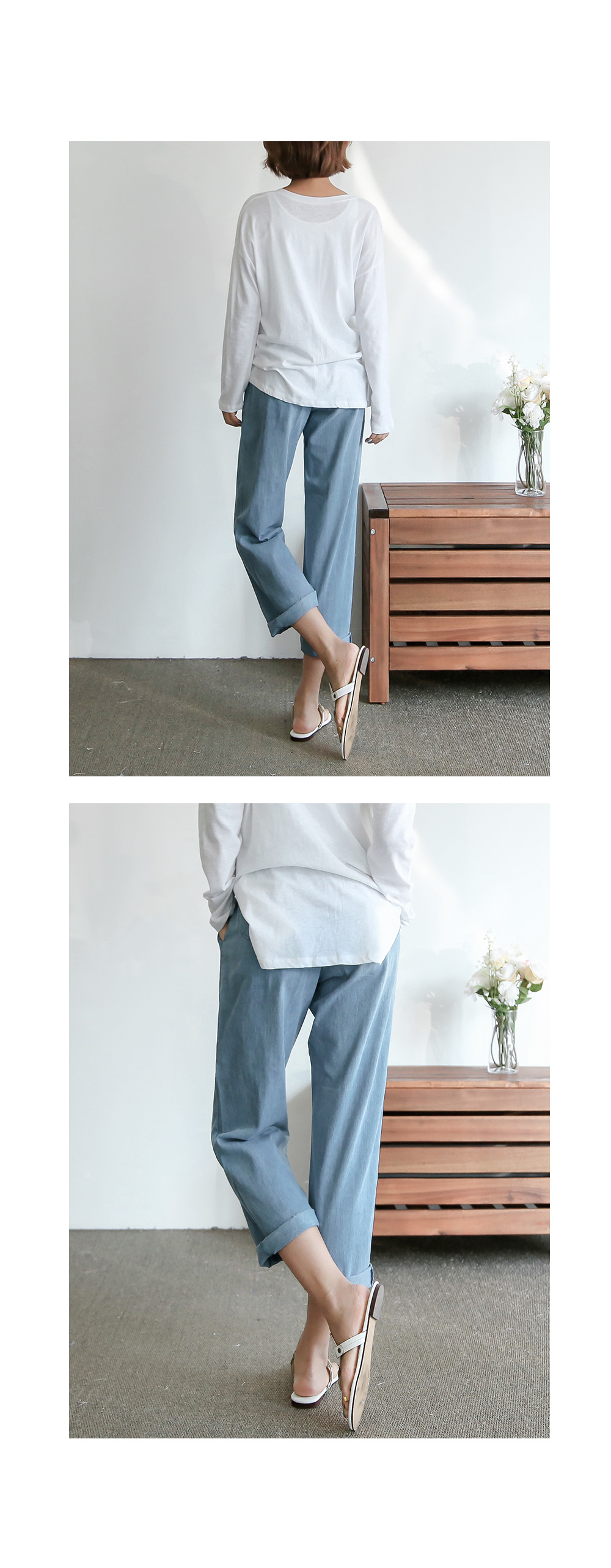 은은하고 라이트한 컬러감이 멋스럽습니다 허리 밴딩에 여유로운 배기핏으로 캐주얼하면서 데일리하게 즐기기 좋습니다 다양한 상의와의 매치가 이지하며 군더더기 없이 깔끔하며 포켓으로 실용성까지 겸비했습니다 밑단은 돌돌 롤업해서 즐기시면 더욱 경쾌하고 예쁘게 연출됩니다