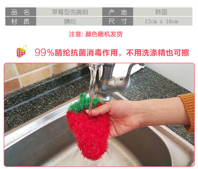 韩国进口碗刷 锅刷 可爱碗刷 厨房刷子 抗菌刷子 草莓型