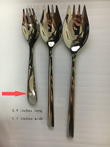 Perfect for:These small sporks can be used as spaghetti, salad, dessert, appetizers, seafood, cocktail, fruit, mini cakes, olives, pastry, tasting forks and spoons.Stylish serving utensils elevates everyday meals into a fine dining experience.