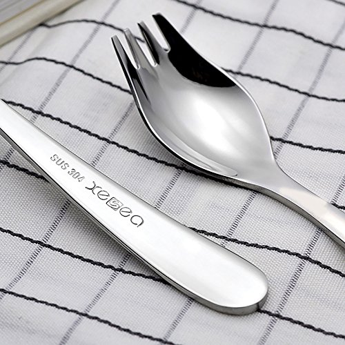 Xesea Sporks 6-pack Mini 18/10 Stainless Steel Sporks for Kids, Fruit Appetizer Dessert Salad Children Flatware Set, 5.9-inch Long(S)
