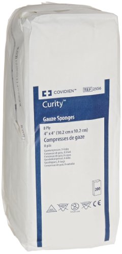 Kendall 2556 Curity Cotton Gauze Sponge, Non-Sterile, 4" Length x 4" Width, 8 Ply (20 Bags of 200)