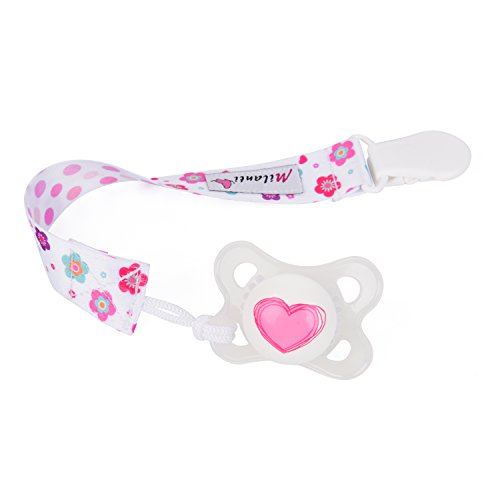 -. Title : Pacifier Clip for Girls, Pack of 3 by Milanti + 18 Name Tags Labels, Premium Quality Fun Designs Universal Holder Leash for Pacifiers, Teething Toy or Soothie, Baby Shower Gift Set