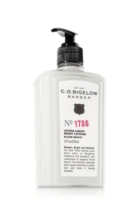 Modern, bright and refined, C.O. Bigelow's Elixir White blends clean citrus notes of bergamot, grapefruit and mandarin with undertones of peppery wood spices. This Ultra-Light Body Lotion is the perfect after-shower hydrator to keep skin feeling moisturized and healthy. Absorbs quickly for the man on-the-go with no time to waste.Feature