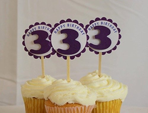 Studio : All About Details Publisher : All About Details Binding : Kitchen Product Description Celebrating 3rd birthday is awesome! Decorate your cupcakes with these 1st Birthday shimmer cupcake toppers. These toppers are adorable and very versatile and will surely compliment various party themes. Each topper is made up of 80lb cardstock and food-safe wood stick. The circular scallop frame the number cut design are made up of 80-lb shimmer cardstock. The white circular frame with message "happy birthday" is made up of 80-lb textured cardstock. The number cut design is set with foam double adhesive to give a floating illusion. This cupcake topper has 2in diameter and 2.5in long food safe stick. The food safe stick gives you freedom on how tall you want the topper set in your cupcake. 0