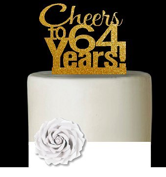 CakeSupplyShop Item#064CTA - 64th Birthday / Anniversary Cheers Super Gold Glitter Sparkle Elegant Cake Decoration Topper