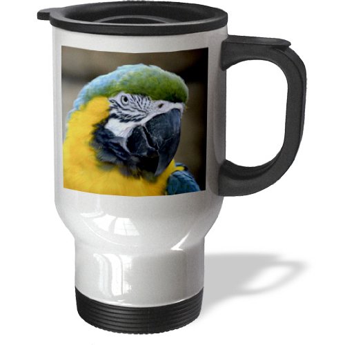 3dRose tm_178424_1 Blue and Gold Macaw Parrot Head View C Travel Mug, 14-Ounce, Stainless Steel