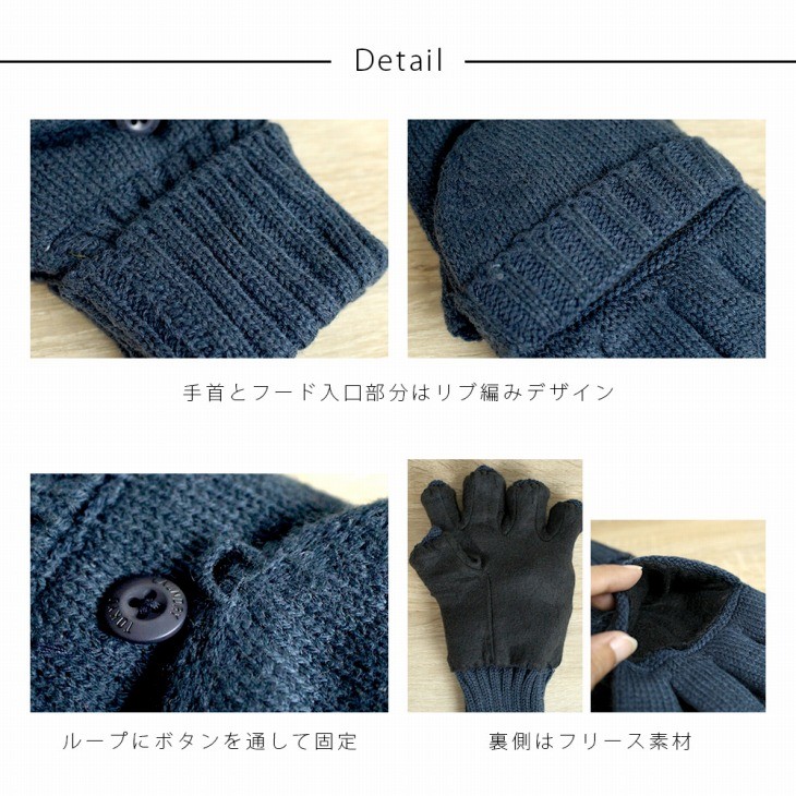 【商品仕様】・指なし+フードを被せてミトンとしても着用可能【商品説明】・指先を使う作業(スマホ操作など)にも使える裏フリースニット手袋・ワンタッチでミトンにもなる、便利な2Way・カラバリ2色・無地なので色々なコーデに合わせやすい・男女兼用【サイズ】全長(指先から手首まで) : 約22.5~23cm全長(指先から手首までで手首部分を伸ばして) : 約29.5~30cmミトンカバーを被せた時の全長 : 約26.5~27cmミトンカバーを被せた時の全長(手首部分を伸ばして) : 約32.5~33cm※縫製の具合により、若干の誤差がございます【 発送について 】ご入金確認後1~3営業日以内に「ゆうメール」もしくは「ヤマトメール便」でお送り致します。※日曜・祝日の発送は行っておりません。発送後2~5日営業日で商品到着予定となります