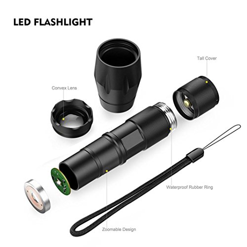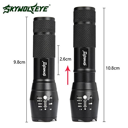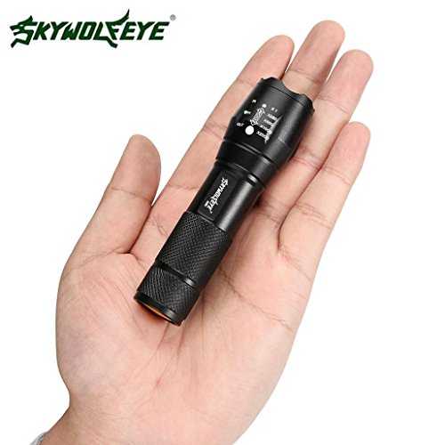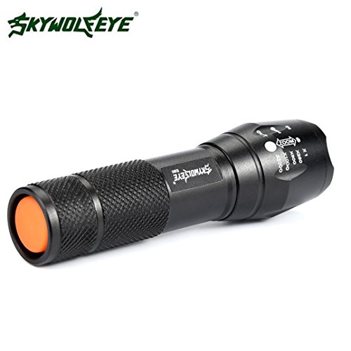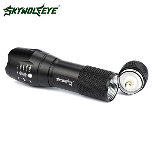 Features: Non-thermal radiation, safe and stable, reliable A strap is given for convenient carrying Featured with variable focus and waterproof performance Specifications: Brand: Sky Wolf Eye Emitter Brand: Cree LED Type: XM-L Emitter BIN: Q5 Light Color: White Casing Color: Black Lifespan: 100000 Hours Switch Type: Clicky Switch Location: Tial Strap/Clip: Strap Included Zoomable: Yes Package Includes: 1 x Sky Wolf Eye CREE LED XM-L Q5?Zoomable Flashlight Torch(Not including Battery) 0