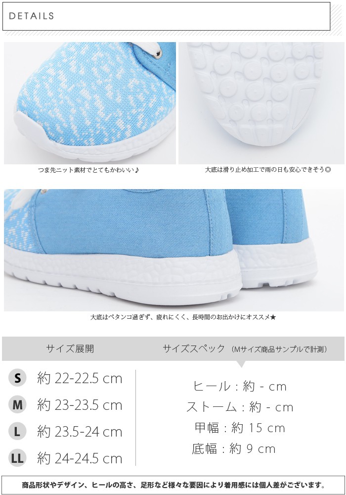 | サイズ | Sサイズ(22.0~22.5cm) Mサイズ(23.0~23.5cm) Lサイズ(23.5~24.0cm) LLサイズ(24.0~24.5cm) | | 実寸 | Mサイズ計測 甲幅:約15cm 底幅:約9cm | | 素材 | 合成皮革等 | | 生産国 | 中国 | | 裏地 | - | | 生地の伸縮 | - | | 生地の透け感 | - | | カラー | 01. ブラック 02. ホワイト 03. デニム 04. ピンク | | 注意点 | ▼綿混合商品は洗濯時に多少縮む事がございます。 ▼パソコン、モニター等の環境により、実際の商品素材カラーが多少異なる場合が御座います。予めご了承ください。 ▼お手数ですが必ずお買い物ガイドを一読頂いてからご利用いただきますようお願い申し上げます。 | |