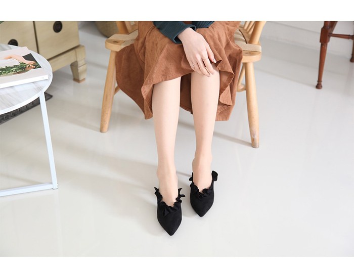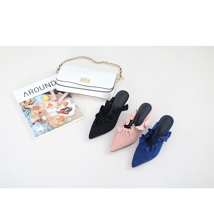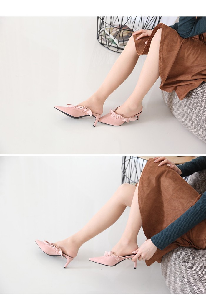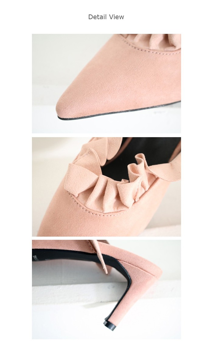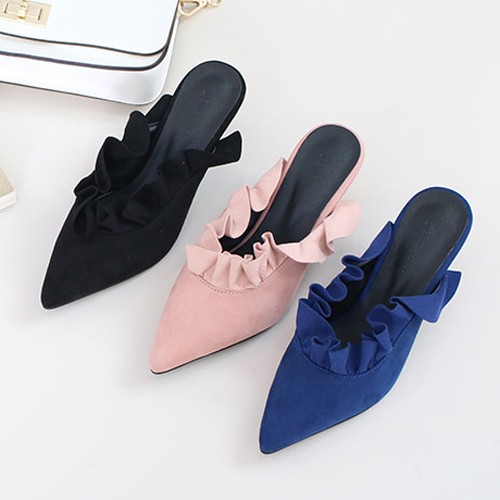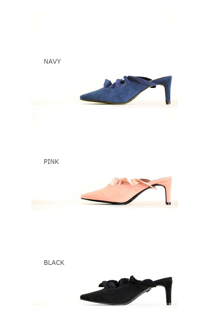 商品名:パンプス レディース ミュール フリル ポインテッドトゥ ピンヒール スエード調 2017 秋 冬 ファッション 靴 婦人靴