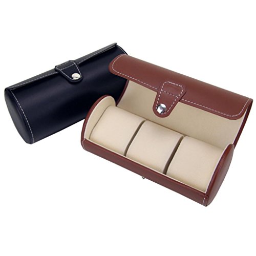 Leewos Portable Classic Watch Roll Organizer Travel Vegan Leather and 3 Slots (brown)