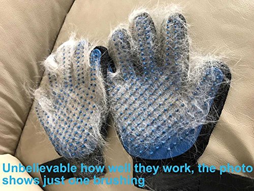❤The 5 finger deshedding glove do well in removing & trapping loose furry pet hair, minimize the flying fur in your house, keep your house clean and pets healthy.