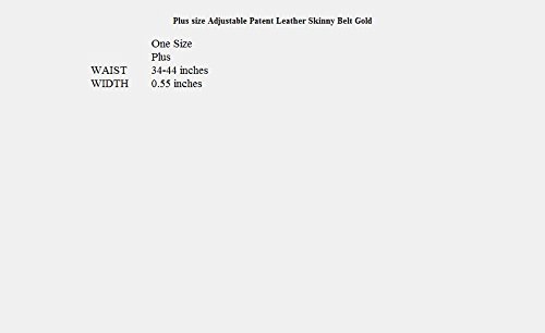 Plus size belt features gold clasp detail. Patent leather. Measures 0.55 inches width. This adjustable belt will accommodate 34 to 44 inch waistline.Feature