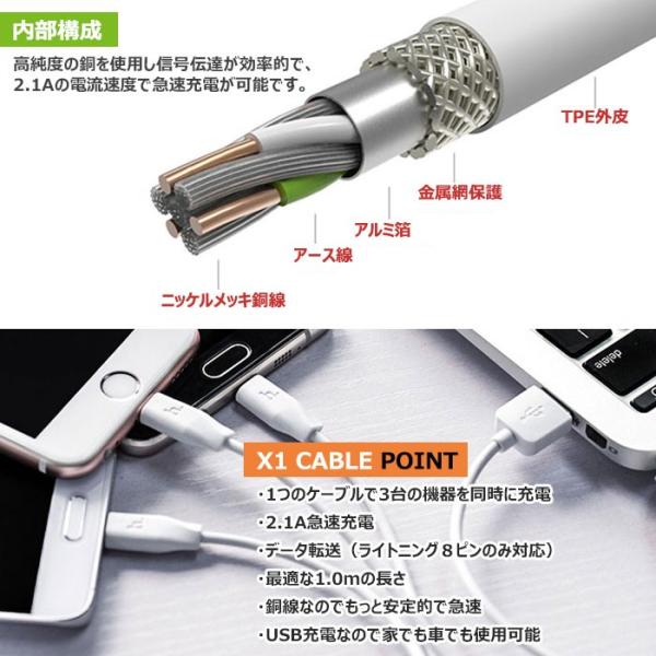 ★充電+データ転送を同時に!!2.1A電流出力に、速度が速くて時間も節約!銅線なのでもっと安定的!