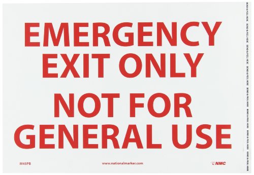 NMC M45PB Emergency and First Aid, Legend "EMERGENCY EXIT ONLY NOT FOR GENERAL USE", 14" Length x 10" Height, Pressure Sensitive Vinyl, Red on White