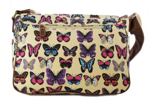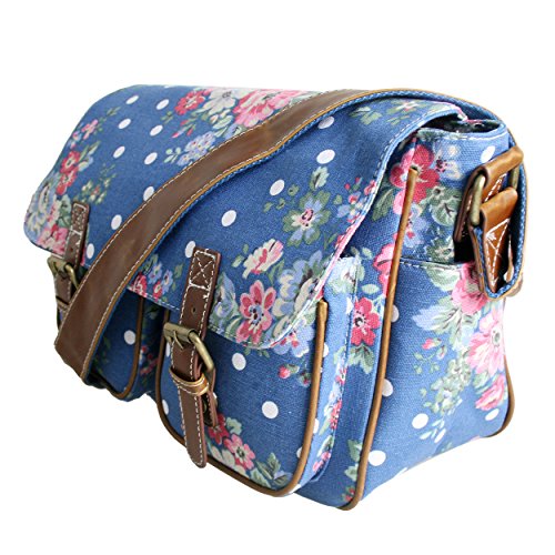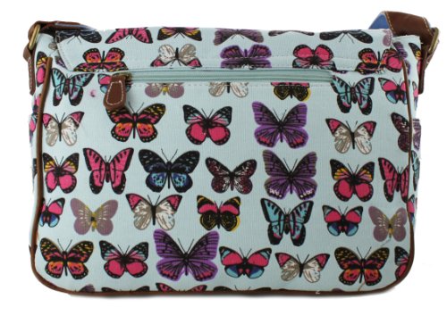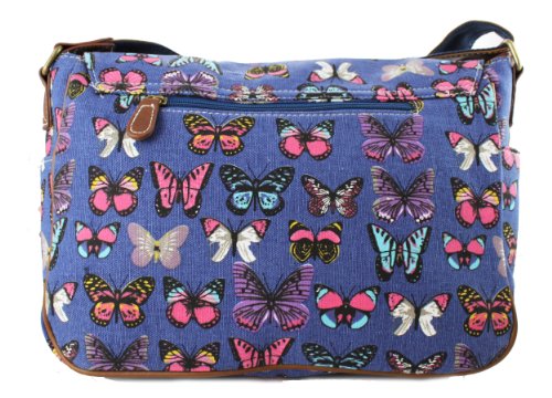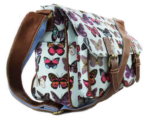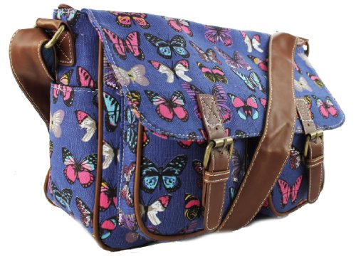 -. Brand : Miss Lulu -. Color : Butterfly Blue -. Department : womens -. Feature : Fashionable canvas satchel, with two front pockets and magnetic fasteners for large front flap. / Features inner open pockets and zipped pocket. / Matching adjustable shoulder strap (approx 100cm fully extended) / Made from high quality canvas material and faux leather trim. / Perfect for school and everyday use. -. Model : L1157 -. ProductGroup : Apparel -. ProductTypeName : LAGE -. Size : OneSize -. Title : Miss Lulu Canvas P.R.Ints Satchel Messenger Shoulder Bag