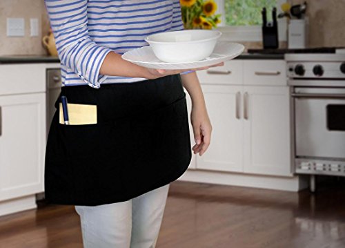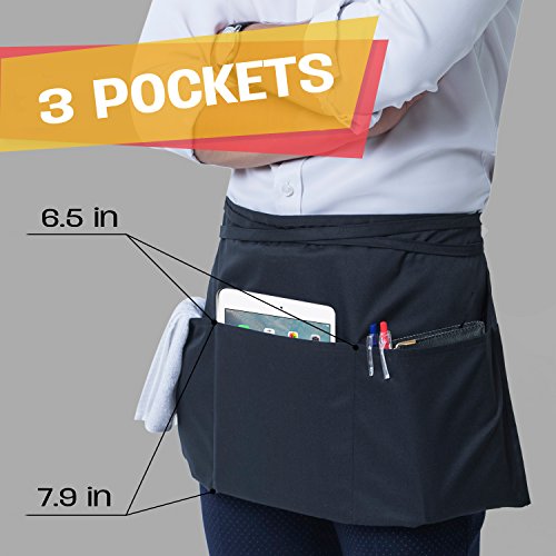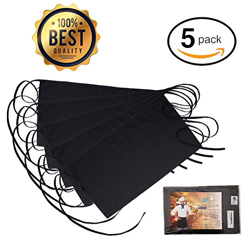Black Waitress Apron - 5 pack with 3 Pockets: 7.9x6.5” – Commercial Grade 35% Cotton & 65% Polyester – Professionally Hemmed Edges to Last – Smart Look, Low Crease – Machine Wash, Iron, Quick Dry