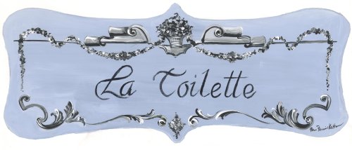 The Stupell Home Decor Collection Light Blue with Scroll La Toilette Castle Edition Bath Plaque