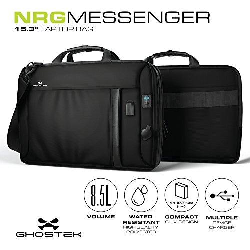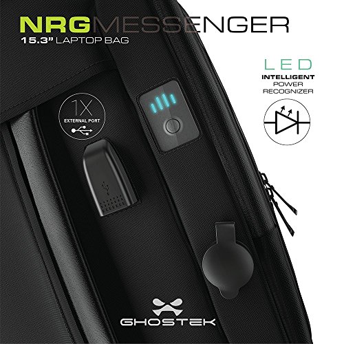 -. Binding : Personal Computers -. Brand : Ghostek -. Feature : 8.5L Capacity | Water Resistant / 16,000mAh Battery + Intergrated LED Power Bar Indicator / 3 USB Ports (2 Internal USB Ports + 1 External USB Port) / 15.3" Laptop Compartment + Multi-Compartments / Ghostek® Provides a Limited 1-Year Warranty Exchange On This Product -. Label : Ghostek -. Manufacturer : Ghostek -. PackageQuantity : 1 -. ProductGroup : PC Accessory -. ProductTypeName : CARRYING_CASE_OR_BAG -. Publisher : Ghostek -. Studio : Ghostek -. Title : Ghostek NRGmessenger Series 8.5L Laptop Messenger Shoulder Bag + 16,000mAh Power Bank with 3 USB Ports | Water Resistant | Laptops Up To 15.3" | Integrated LED Power Bar Indicator