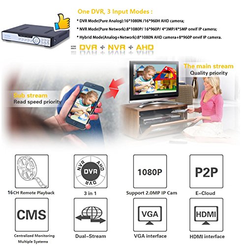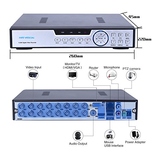 -. Binding : Office Product -. Brand : HISVISION -. Feature : 16CH Analog+AHD+IP 3-in-1 Advanced Hybrid DVR security system--Support 1080P/1080N AHD Camera/1080P Onvif IP camera,HDMI and VGA output.NOTE:HD-SDI camera is not workable with HISVISION HVR / One DVR 3 Input Modes:1)DVR: 16*1080N/16*960H; 2)Hybrid:8*1080N(analog)+8*960P(network); 3)NVR: 8*1080P/16*960P/4*3M/4*5M / Amazing Quck QR Code Scan Easy Remote View on DVR from Free App GOODEYE to instantly access live video and playback on Windows PC/iPhone/Android/Tablets or Standard Web Browsers, No more complicated DDNS and network configuration involved / Motion Detection Email Alarm--Allows you to Record Only When Motion is Detected So That You Can Save Hard Drive Storage Space without Missing Important Events,USB Backup Feature for Peace of Mind / 1 year warranty and Lifetime Support.Updated user manual URL http://www.hisvisioncctv.com/help; IP Cameras must support ONVIF -. Label : HIS VISION -. Manufacturer : HIS VISION -. MPN : AY8616NL3in-AM -. PackageQuantity : 1 -. PartNumber : AY8616NL3in-AM -. ProductGroup : Office Product -. ProductTypeName : OFFICE_PRODUCTS -. Publisher : HIS VISION -. Studio : HIS VISION -. Title : HISVISION 16CH 1080N AHD DVR 3-in-1 Hybird(1080P NVR+1080N AHD+960H Analog) CCTV Home Security Surveillance HDMI/VGA Quick QR Code Scan Easy Remote Access Motion Detection &Email Alerts(No HDD)