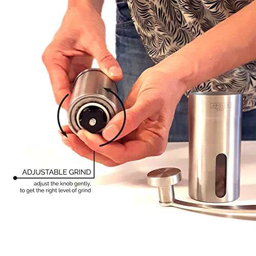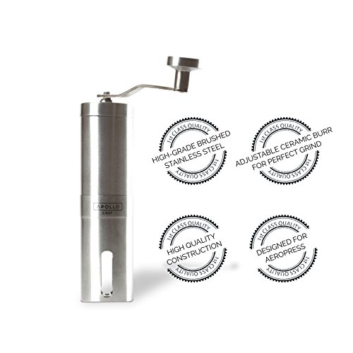 The Apollo Premium Manual Coffee Grinder was designed to put the perfect cup of coffee back in your life. The fast pace of modern life usually sees us grabbing a paper or styrofoam cupful of coffee on the run, but that's not what coffee was meant for. No, coffee should be