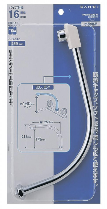 パイプ外径16mmの水栓パイプです。流しが広々と使えます。