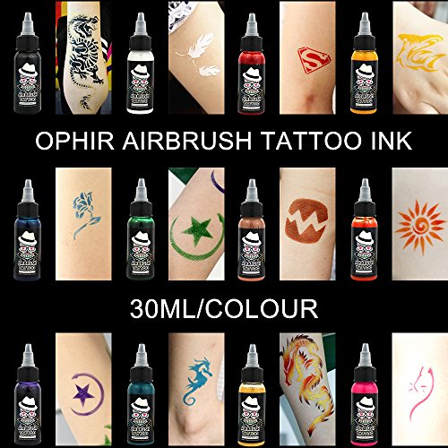 OPHIR 12x30ML/Bottle Airbrush Body Art Inks Pigment for Airbrushing Temporary Tattoo Airbrush Body Tattoo Colors