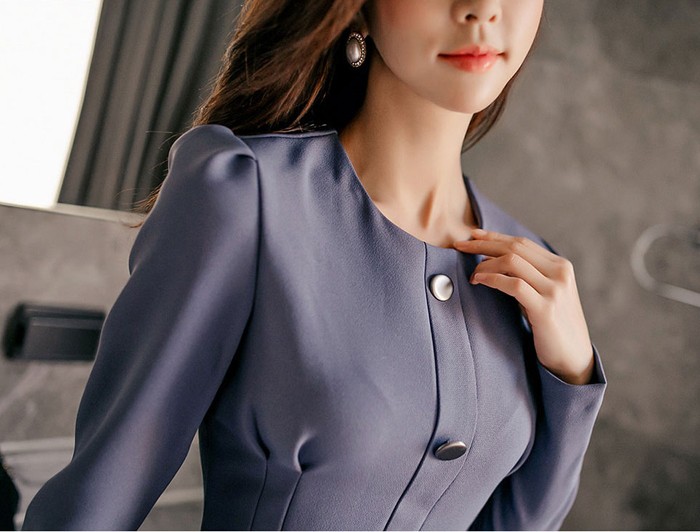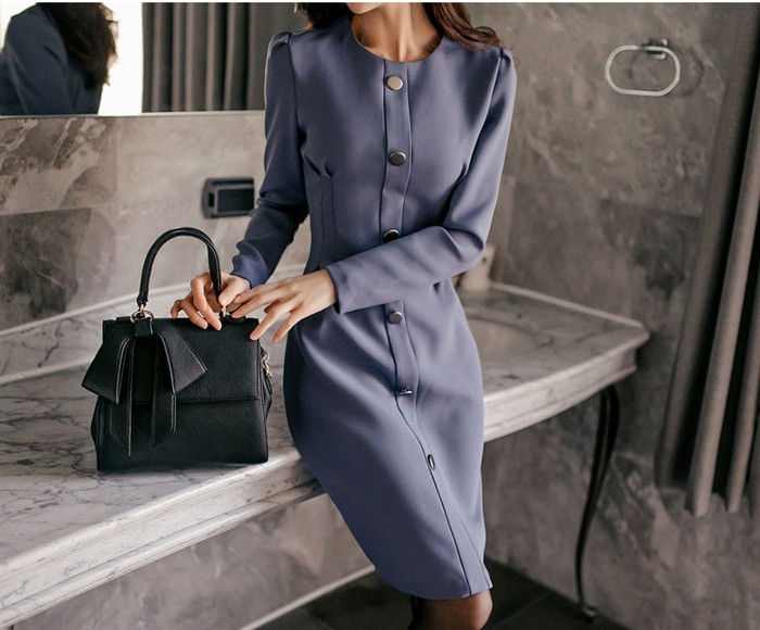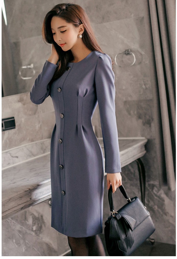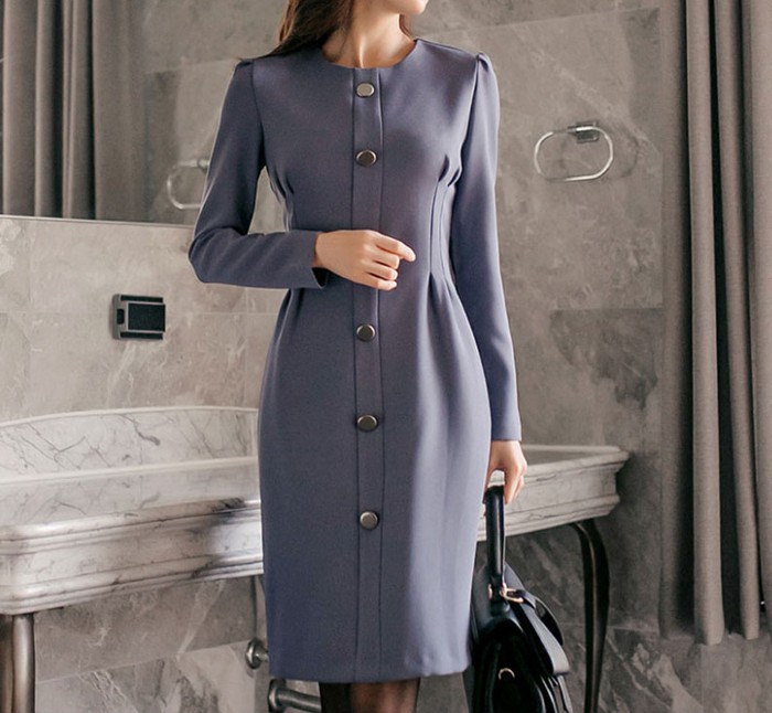 商品名:ワンピース ミニ丈 長袖 きれいめ 無地
