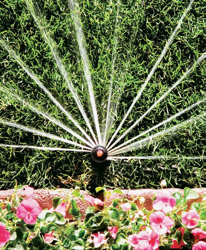 -. Feature : 180° half circle pattern rotary sP.R.Inkler head with 4" pop-up height / Multiple rotating streams distribute water uniformly / Slow distribution rate of 0.6 inches per hour is ideal for newly seeded areas and hillsides / Extended throw from 13' to 18' covers more area with fewer sP.R.Inkler heads / Pressure-activated wiper seal protects mechanism from creeping grasses and sandy soil