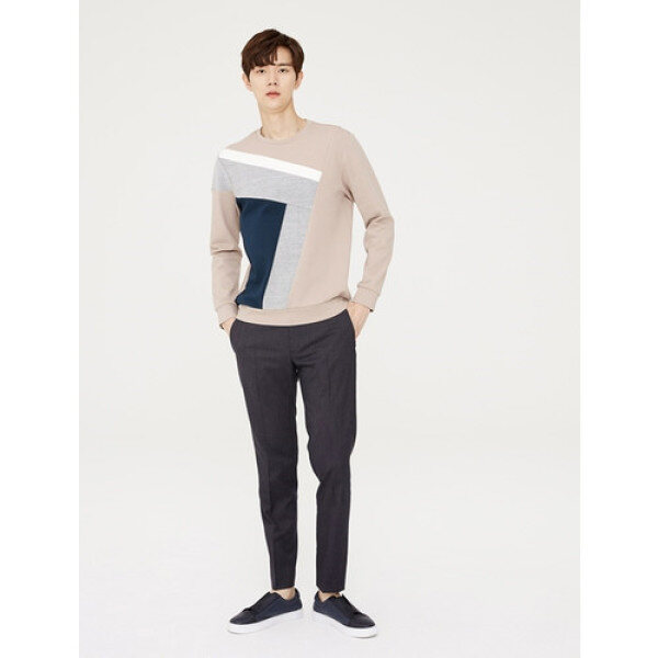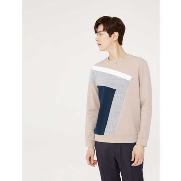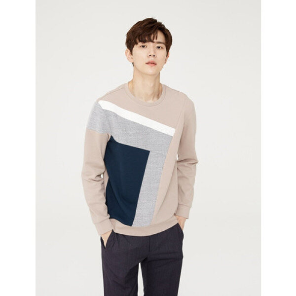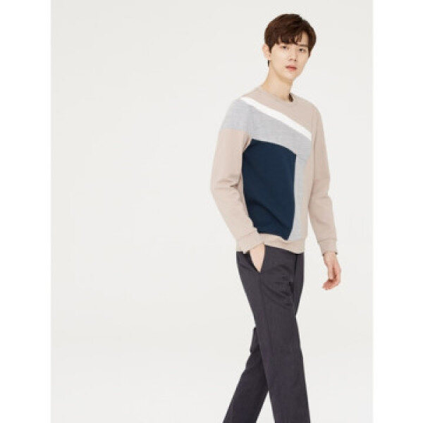 남성스판사선칼라블럭 맨투맨 티셔츠