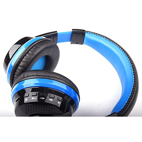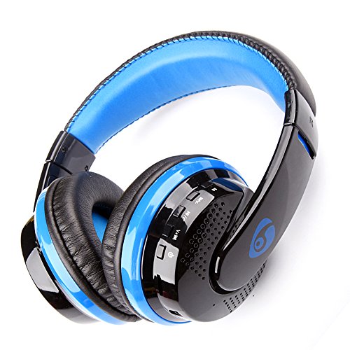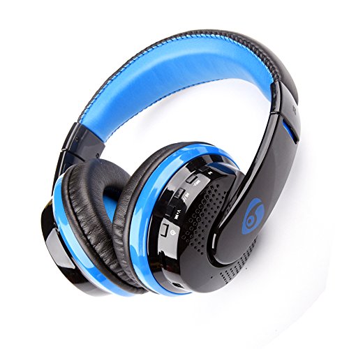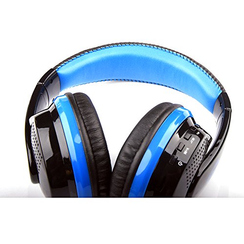 Desxz MX666 Bluetooth 4.0 + EDR Game Gaming Headphones Wireless Stereo Super Bass Headband Support FM/SD Card with Mic (Black+Blue)