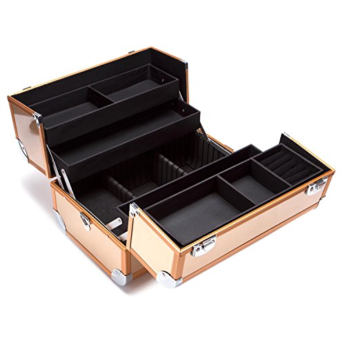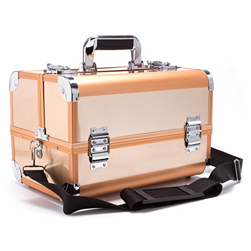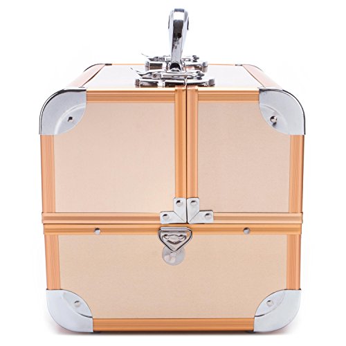 Professional Aluminum Makeup Organizer Beauty Artists Cosmetics Makeup Train Case Jewelry Storage Organizer(Gold)