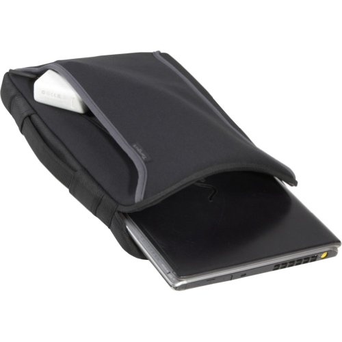 - Feature : Compatibility Fits up to 13.3 laptops with extended batteries and up to 14 laptops without / Functionality Helps protect the laptop from drop and scuffs; features exterior zippered compartment and interior storage pouch / Material Constructed of durable, weather-resistant neoprene material