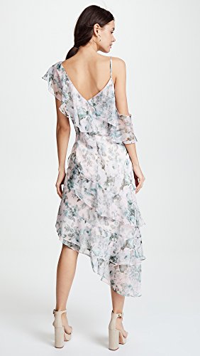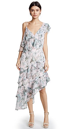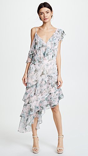 Floral print chiffon tiered asymmetrical occasion dress