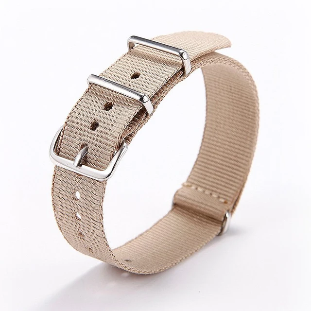 YCYS! 시계 스트랩 나일론 군사 18 미리메터 얇은 스테인레스 스틸 버클 키 살구