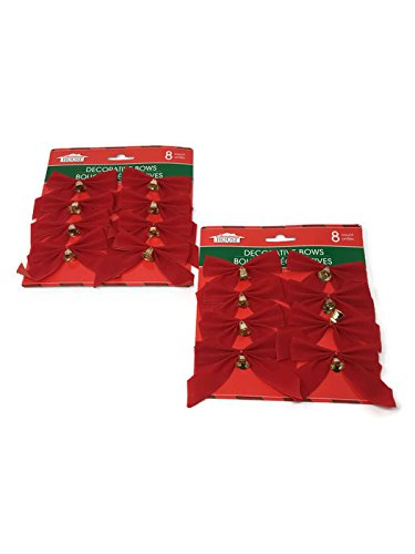 Christmas Red Velvet Bows with Bells 16 Count 3.7' x 4.9'