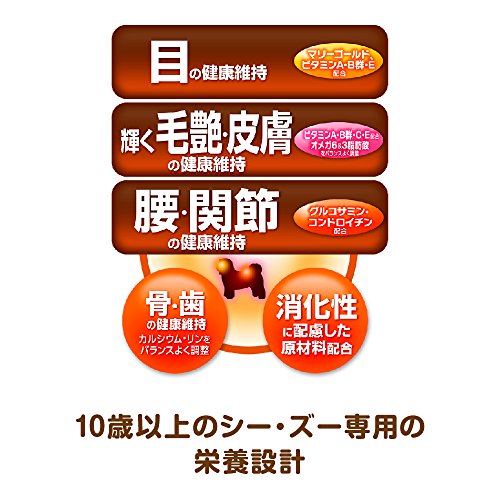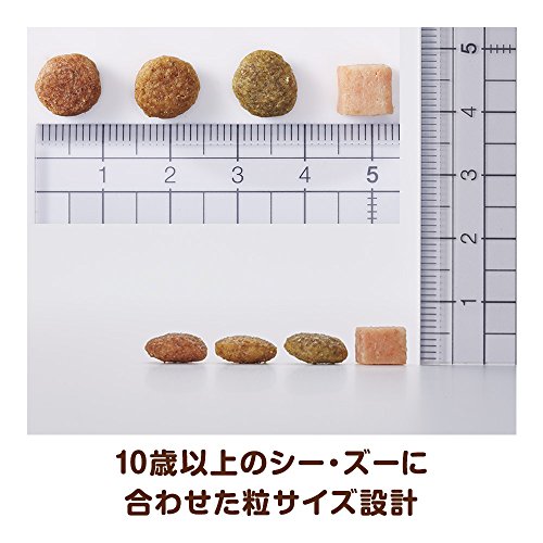 原材料:穀類(トウモロコシ、小麦粉、パン粉、玄米)、肉類(チキンミール、鶏ミンチ、チキンエキス)、魚介類(フィッシュミール、乾燥小魚)、動物性油脂、豆類(大豆、大豆エキス)、野菜類(ビートパルプ、ニンジンパウダー、カボチャパウダー、ホウレンソウパウダー)、ビール酵母、チーズ、マリーゴールドミール、ソルビトール、ミネラル類(カルシウム、塩素、銅、ヨウ素、カリウム、ナトリウム、亜鉛)、グリセリン、ビタミン類(A、B1、B2、B6、B12、C、D、E、K、コリン、パントテン酸)、保存料(ソルビン酸K)、グルコサミン塩酸塩、フマル酸、着色料(二酸化チタン、赤色106号、黄色4号、黄色5号、青色1号)、酸化防止剤(エリソルビン酸Na、ミックストコフェロール、ハーブエキス)、コンドロイチン硫酸