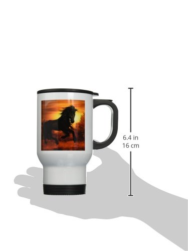 3dRose Black Wild Horse Running in The Sunset Stainless Steel Travel Mug, 14-Ounce