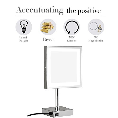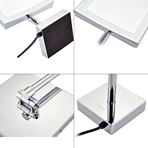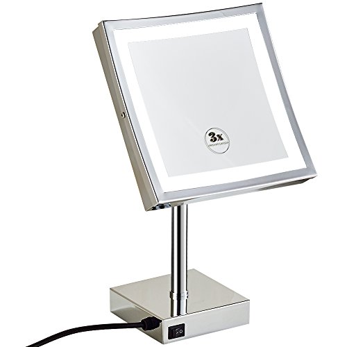 GURUN 8.5 inch Square Makeup Mirror with Lights Led 3x Magnification,Chrome Finish M2205D(8.5in,3)