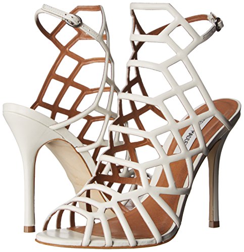 Get tied up in one of the hottest sandals around. Madden's cage-like SLITHUR sandals are finished with an open toe, stiletto heel and strappy upper. We recommended teaming with something classic like a fitted pencil skirt and a drapey sweater. Leather or man-made upper material Man-made lining Man-made sole 4.25 inch heel height Round open toe sandal Caged upperFeature