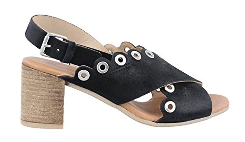 Studio : ERIC MICHAEL Publisher : ERIC MICHAEL Binding : Apparel Product Description Women's Eric Michael, Emma Mid Heel Sandal Leather upper with grommet detailing Adjustable buckle strap for a secure fit Leather lining for an abrasion free foot environment Cushioned footbed for added comfort 2 1/2 inch heel. Heel Height of 2.50 inches 0