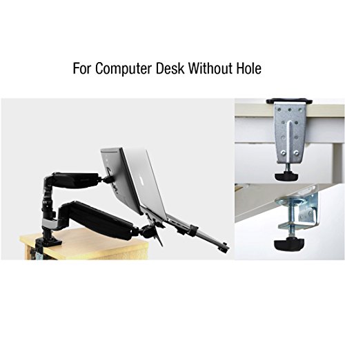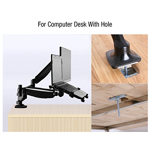 - Feature : Vesa: 75X75mm, 100X100mm.Screen size:10-24 inch monitor and 11-15.6 laptop with supplied notebook tray. / Comes with Notebook Arm Mount Tray to better hold your Laptop/Notebook / Loading weight-bearing:3.3-11 pounds/per arm / Can hold two LCDs or 1 LCD and 1 Laptop/Notebook / It can work both clamp and grommet. The mount can clamped to desk within 0.79''-3.94''(20mm-100mm) thickness or grommet to the desk with the size of the hole:0.33''-2.75''(8.5mm-70mm).