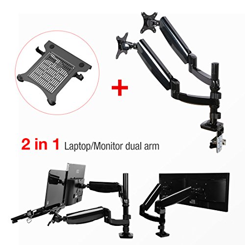 - Title : 2 in 1 FLEXIMOUNTS L02 Dual Arm Full Motion Gas Spring Height adjustable desk laptop Mount for 11-15.6 inch Laptop/Notebook and 10-24 inch LCD Computer Monitor