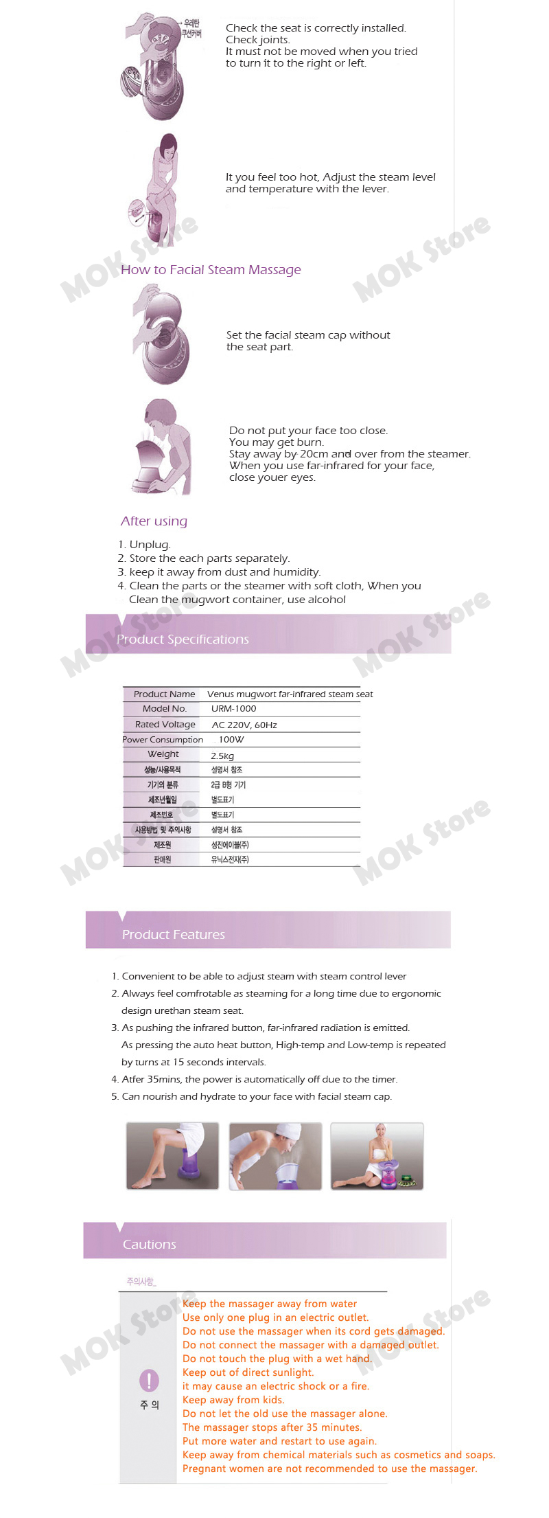 4. Pregnant women are not recommended to use the steam seat.