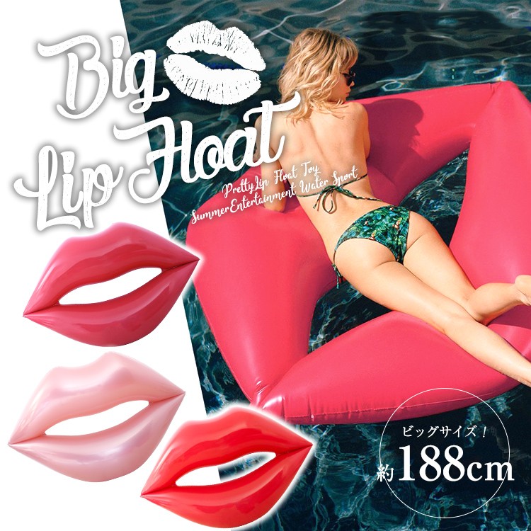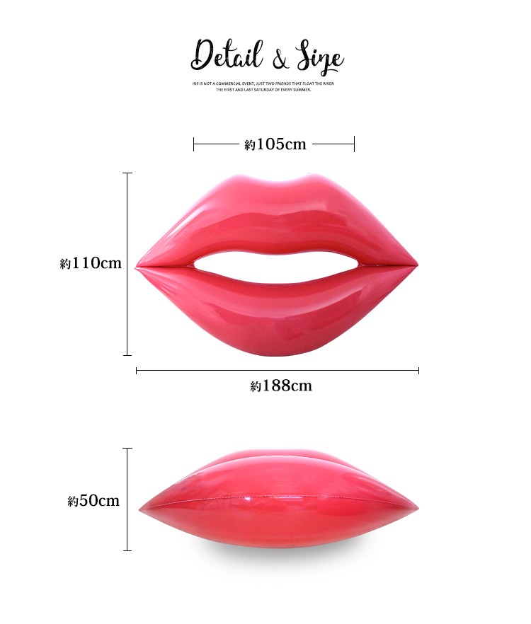 海外で話題沸騰中!SNS映え間違い無し!のくちびる型ビックフロート【リップフロート】登場。 こちらの商品は中央に穴が開いており、浮き輪タイプとなっております。 |