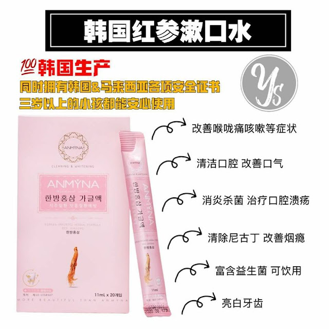Anmyna Korea Red Ginseng Mouthwash 安米娜韩国红参 漱口水 (20 sticks/box)