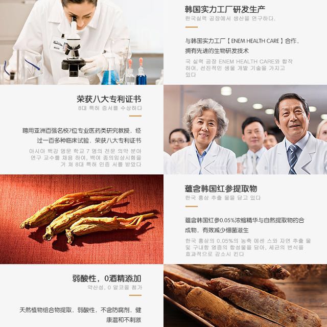 韩国实力研发团队- 7位专业医药类研究教授 10年精心调制配方