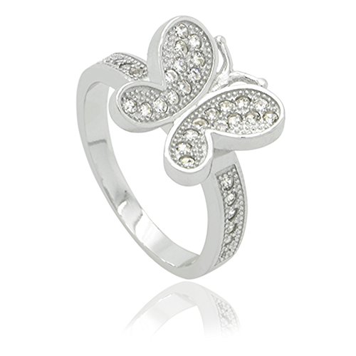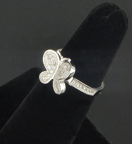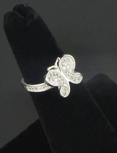 -. Feature : Plating: Rhodium / Base: .925 Sterling Silver / Micro Pave Butterfly Statement Ring / Imported